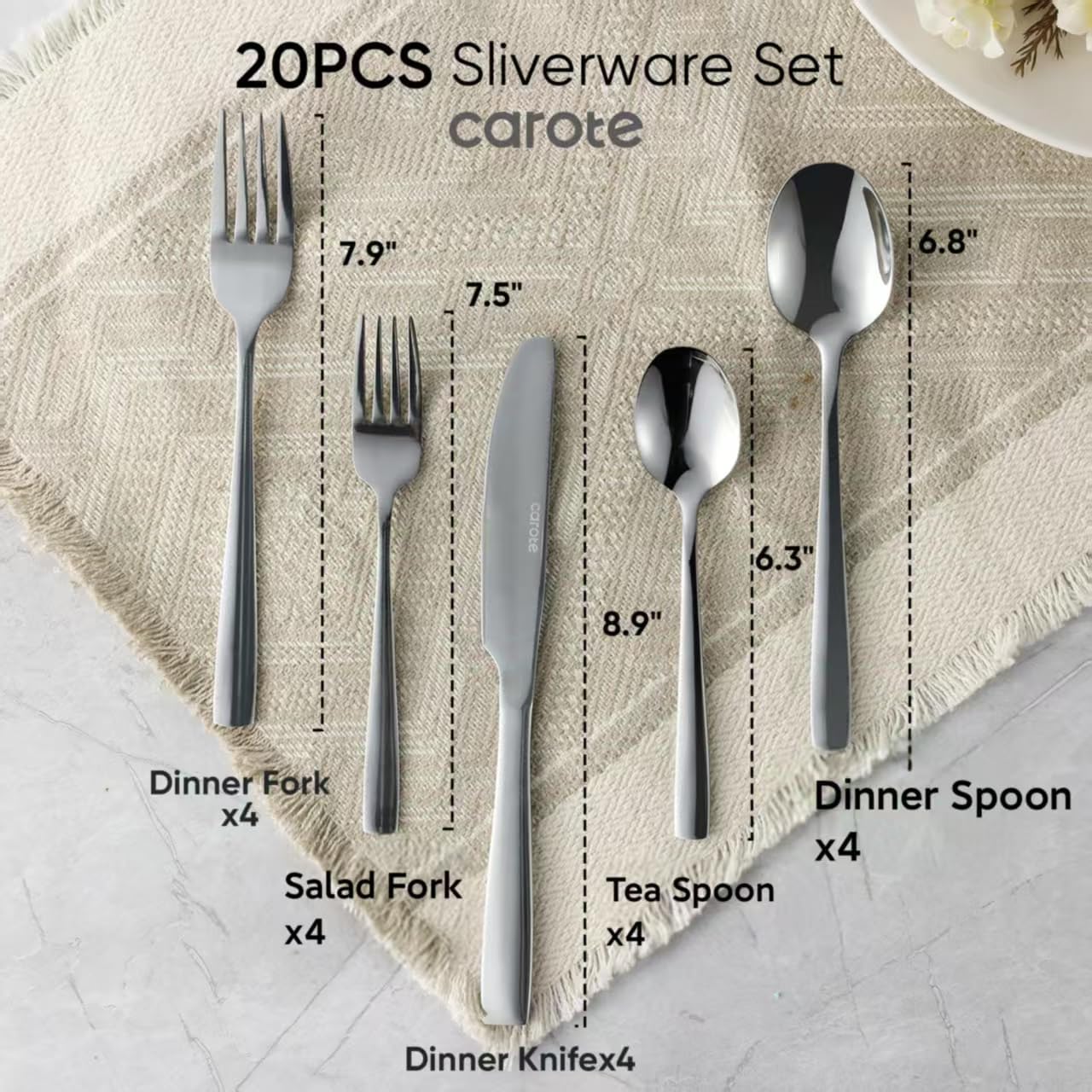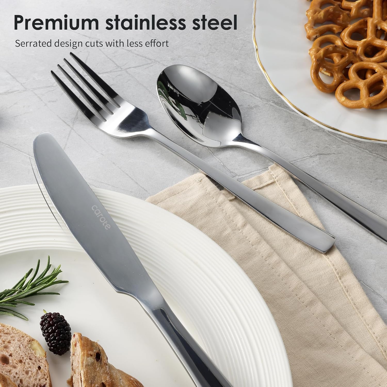 - Food-grade Stainless Steel: Crafted from high-quality stainless steel, this stainless steel silverware set ensures exceptional durability and resistance to rust and corrosion. Plus, it’s dishwasher-safe for effortless cleaning, maintaining its shine all the time.